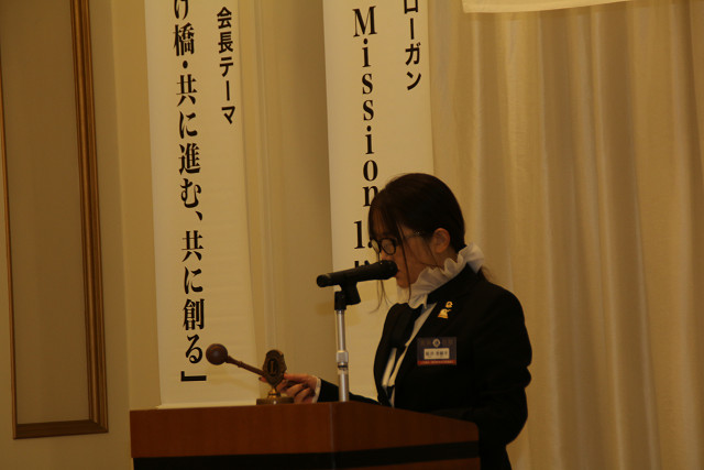 稲津会長の開会のあいさつに続き、楢木会員委員長より今月誕生日を迎えられる3人にカランコエの花の贈呈がありました。